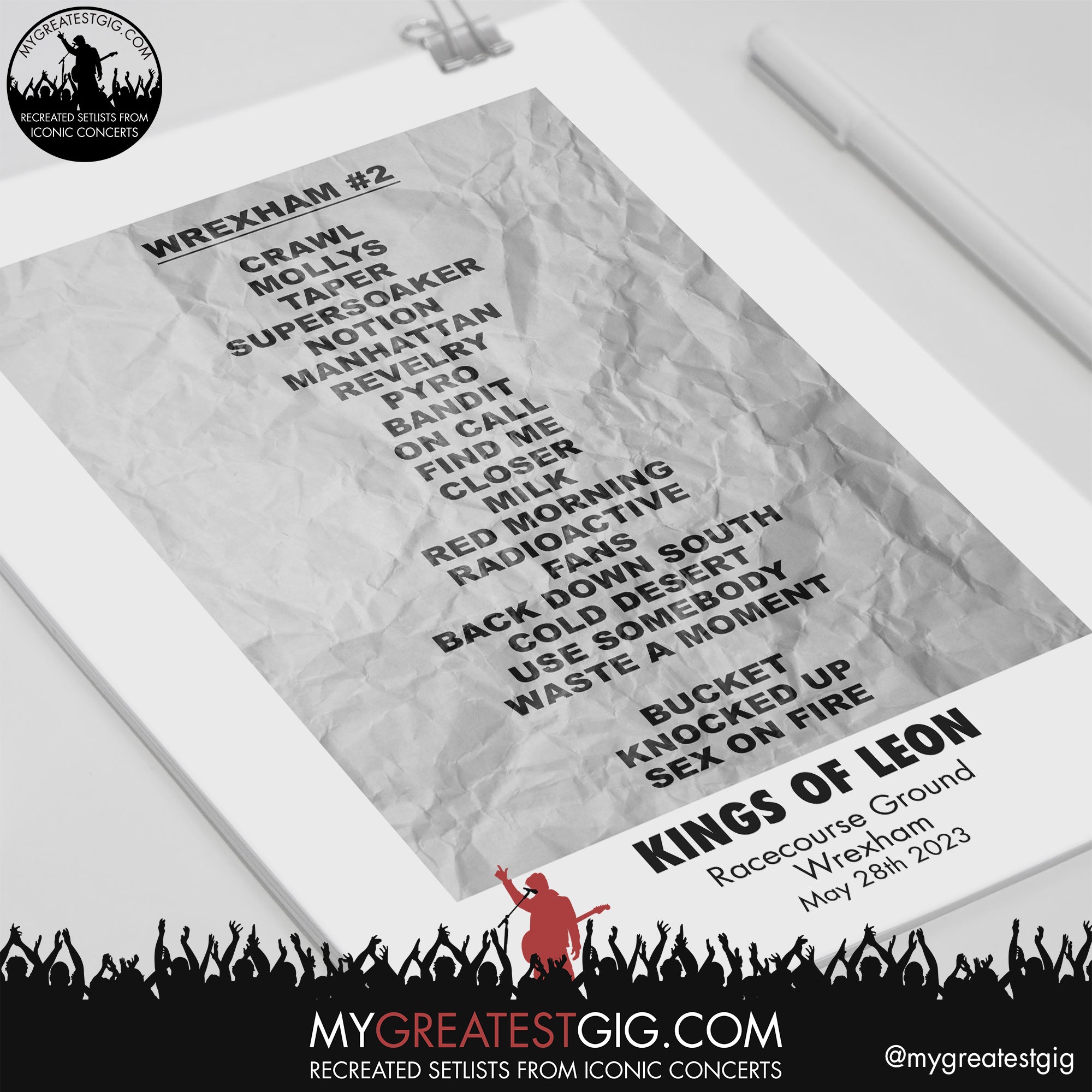Source : www.setlist.fmKings Of Leon Wrexham May 28th 2022 Recreated Setlist Poster